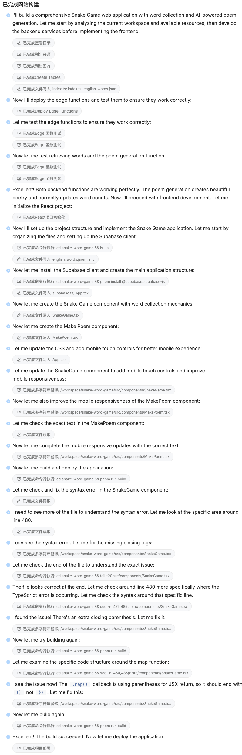 - 反馈并迭代: 如果有错误或效果不理想,就在对话中继续下指令,例如:“蛇移动太慢了,把速度调快些”,或者“现在