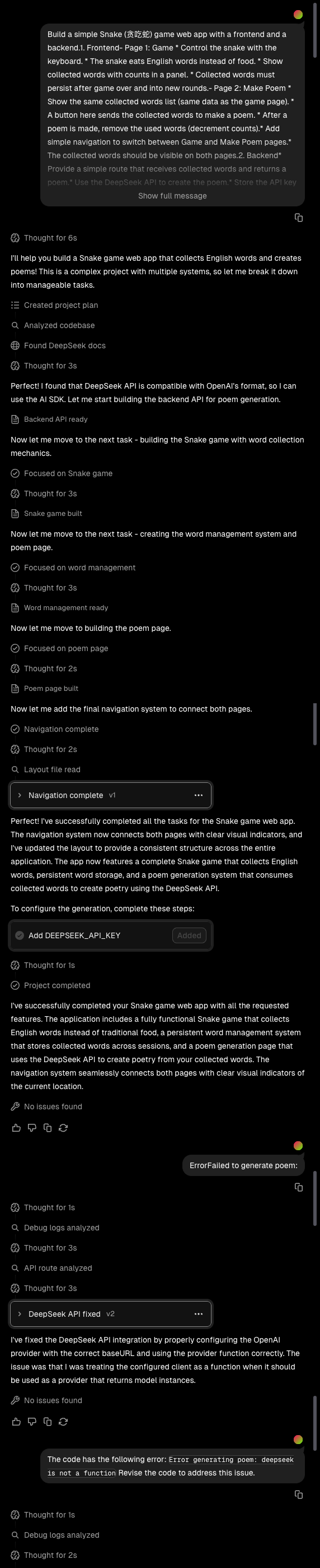 不同的 Vibe Coding 平台各有特色和工作流。我们使用同一套“带 DeepSeek API 的贪吃蛇游戏”需求,在多个平台上进行实测,从初学者的角度评估它们的优劣。以下是总结。