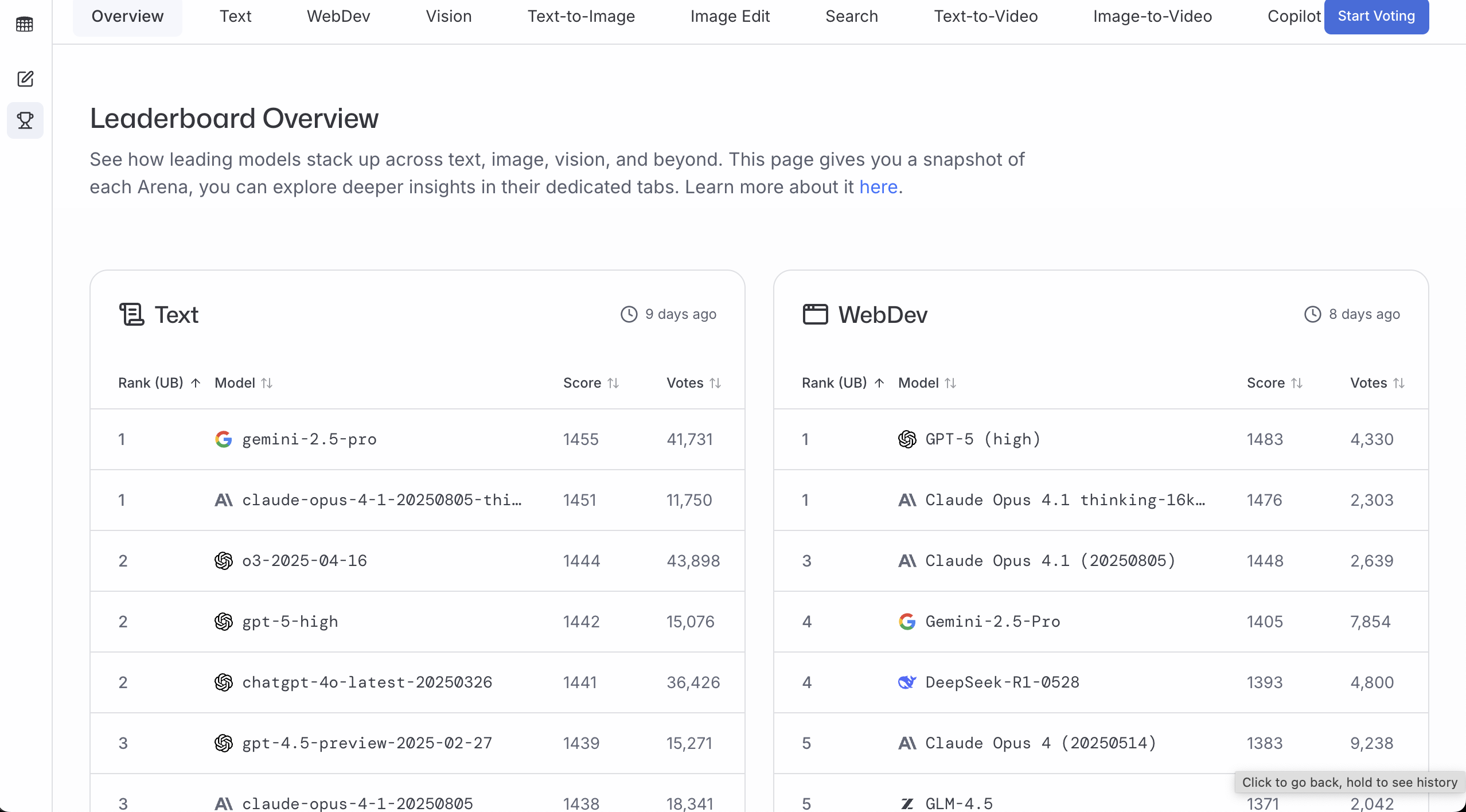 LMArena 更适合用来判断“多数人更偏好哪个模型的回答”。投票越多、分数越高,通常意味着它在真实使用场景里更稳。
