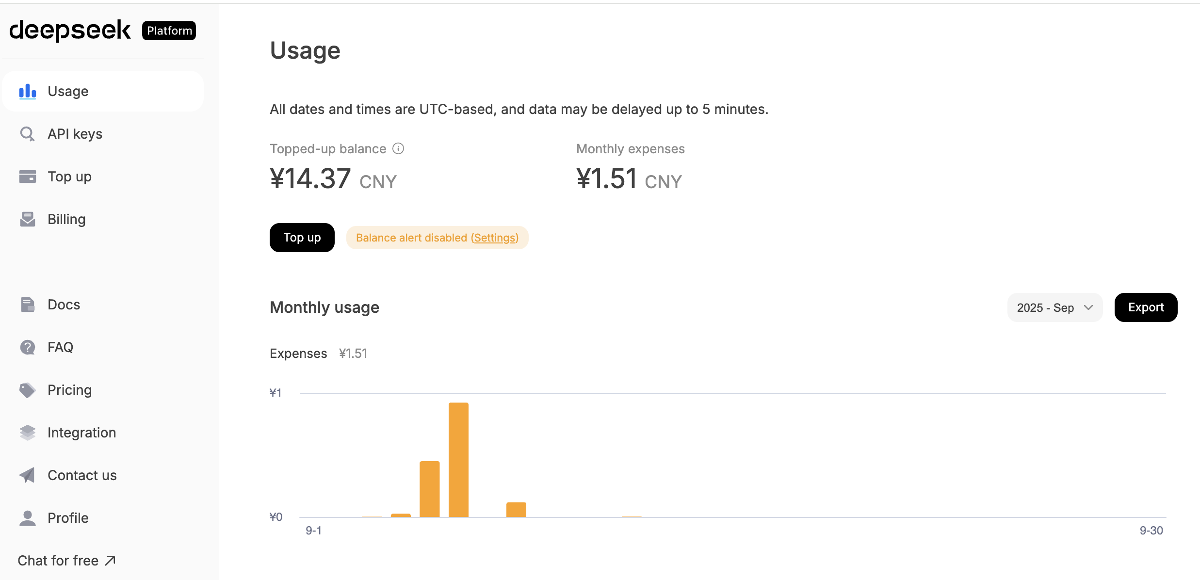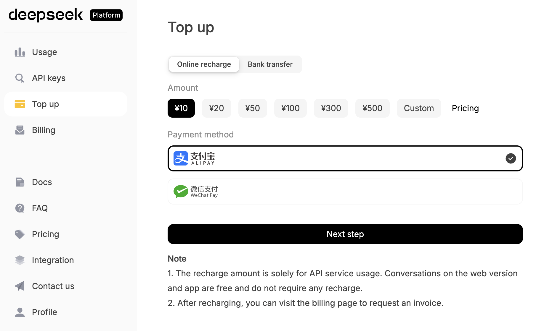 接下来我们进行演示,你可以跟随操作走一遍全流程。首先注册 DeepSeek 账号并创建一个 API Key,并且充值少量费用进行验证。