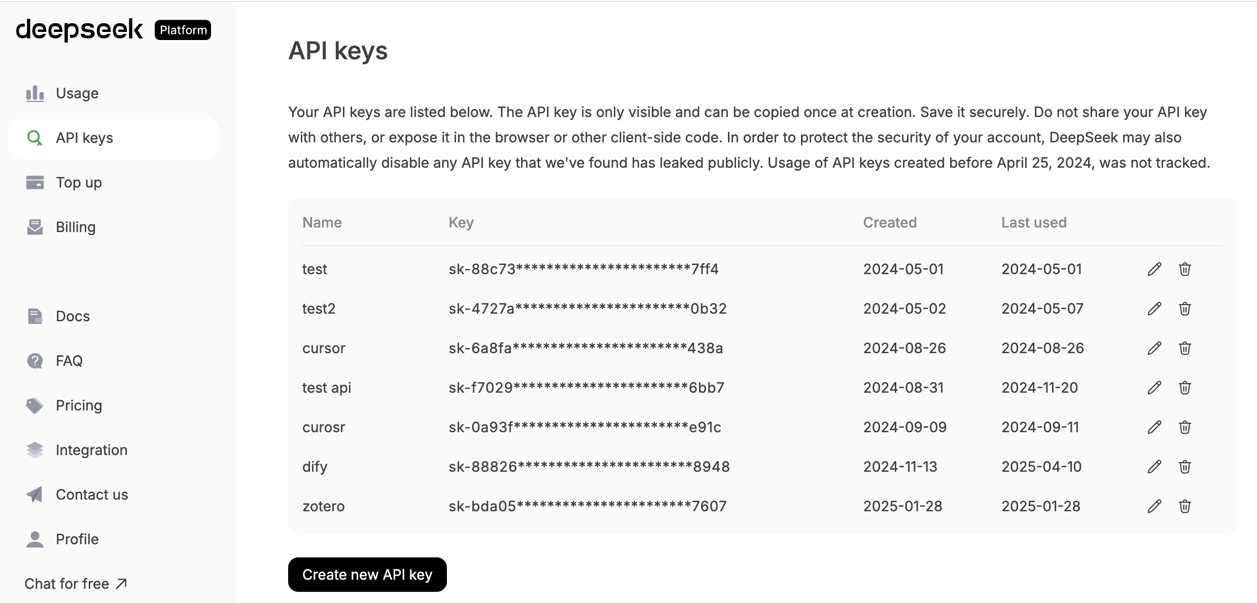 - 在 DeepSeek 平台创建一个 API Key