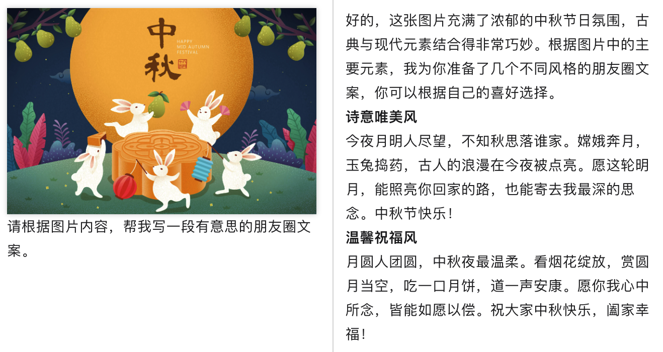 当然,此处你可能想问,我怎么知道真正调用了大模型而不只是内置了固定的回复?你可以输入自定义的文案,让大模型根据你及时指定的自定义分析,生成对应的文案。